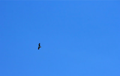 Above the cliffs a Red-shouldered Hawk rides a warm breeze upward, lifted in the thermal until he becomes a speck against the blue. His cries continue until we see nothing.